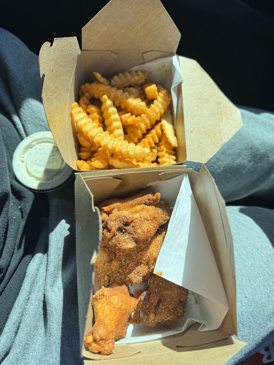 The wings were fresh, hot, and cooked perfectly. I tried Lemon Pepper and Original Hot. both were flavorful and had a great crunch. Just note that if you order 10 wings, they’ll only toss them in one sauce; you need to order 20 if you want two flavors tossed. The crinkle-cut fries were plain with no seasoning. Overall, solid wing spot and yes, I would go back.
